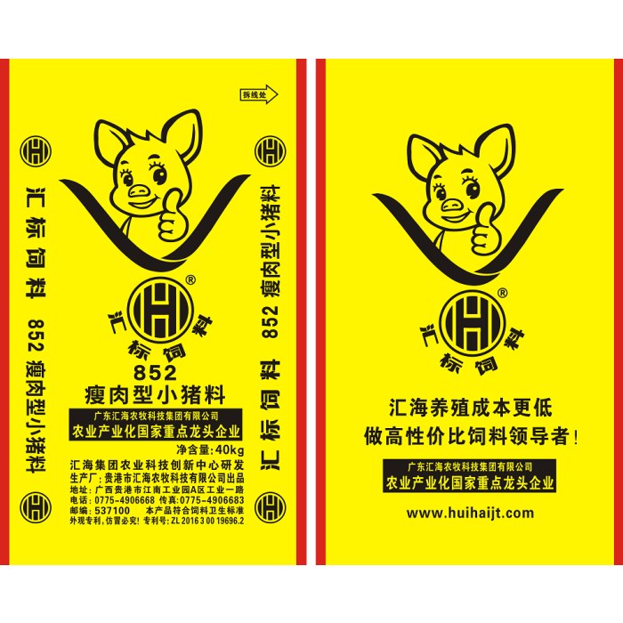 汇标852/L/40KG/瘦肉型小猪配合饲料
